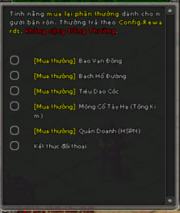 Tùy chọn mua lại hoạt động trong ngày, tuy nhiên chỉ có thể nhận thưởng, không nhận được uy danh |